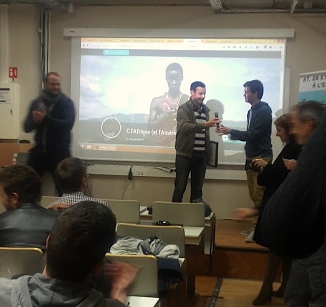 Aux alentours de 16h, après deux jours passés aux cotés des experts Cdiscount et Microsoft, les équipes ont pu présenter leurs démos au jury. Le verdict des juges est tombé peu après : l’équipe Trynbuy s’est vu remettre le prix Microsoft. Les deux membres ont chacun reçu une tablette Surface pro.