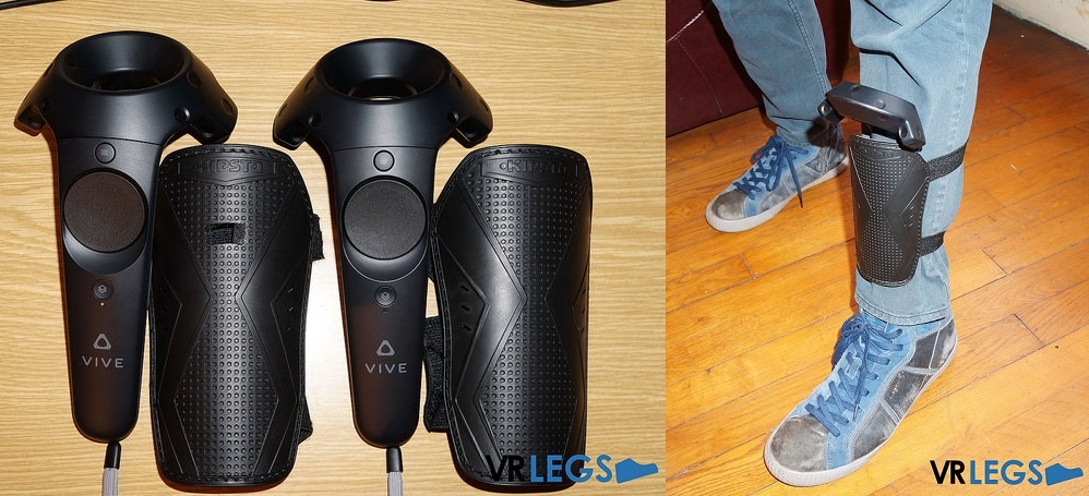 VRLegs est un outil permettant d’utiliser ses jambes en réalité virtuelle. En accrochant les manettes du casque de réalité virtuelle HTC Vive sur ses jambes, il est alors possible d’effectuer de nouvelles interactions dans son monde virtuel et d’y voir ses pieds. Comme par exemple tirer dans un ballon de foot, écraser des cibles au sol ou donner des coups de pied dans une poupée de chiffon .