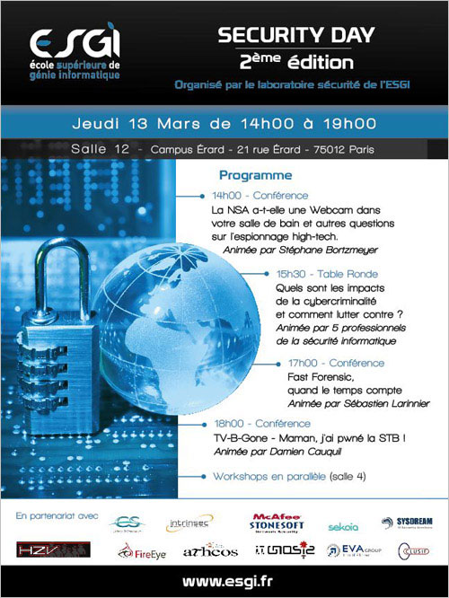 Le Laboratoire Sécurité de l’ESGI a le plaisir de vous inviter à la