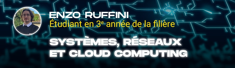 Je suis dans la filière SRC : Systèmes Réseaux, Cloud Computing. C’est une filière qui nous permet de découvrir et/ou d’approfondir nos connaissances dans le milieu de l’IT en entreprise et de nous initier à l’utilisation du cloud qui est une technologie de plus en plus utilisée en entreprise.